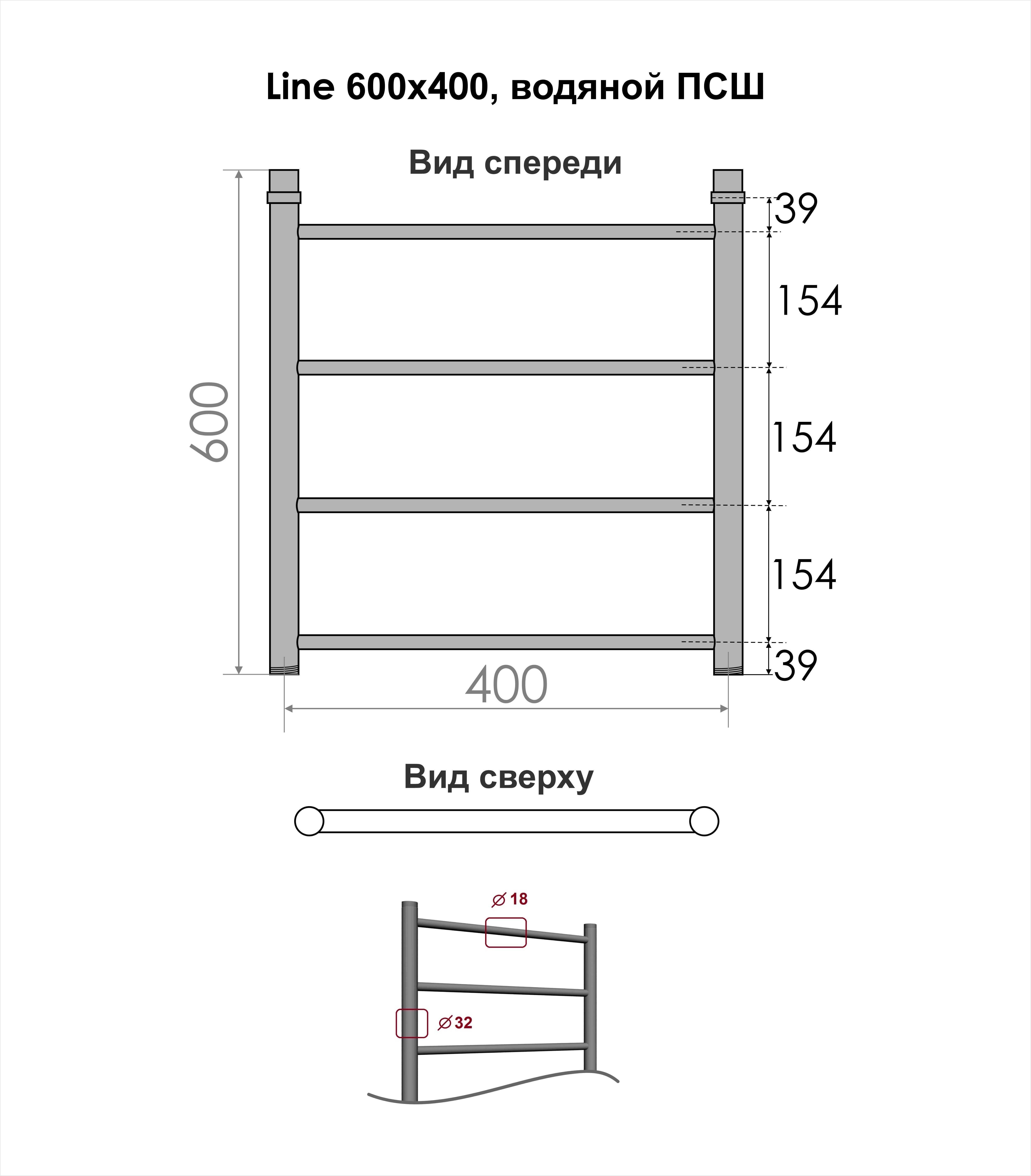 Полотенцесушитель водяной INDIGO Line в размере 600х400 (ВхШ).