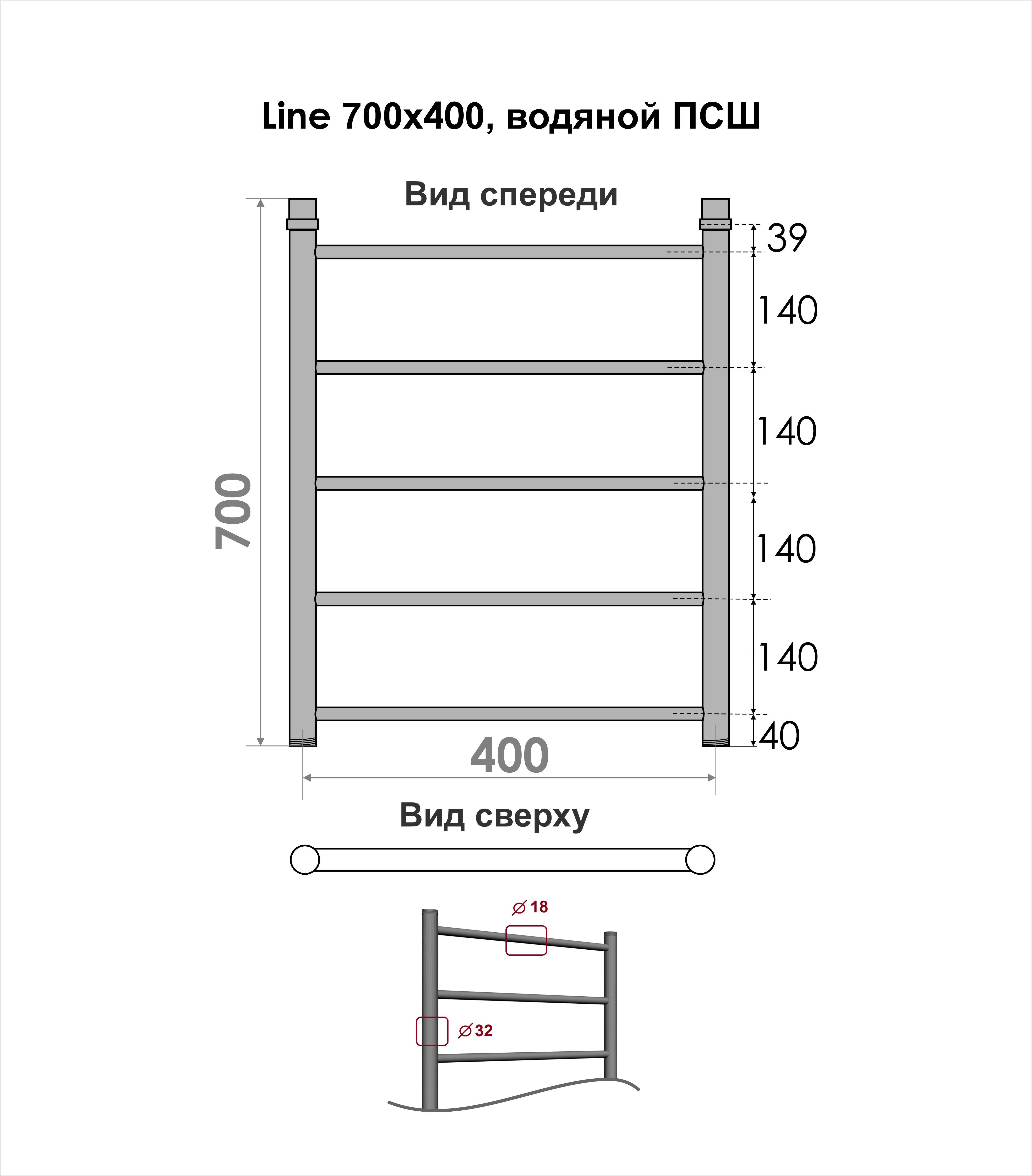 Полотенцесушитель водяной INDIGO Line в размере 700х400 (ВхШ).