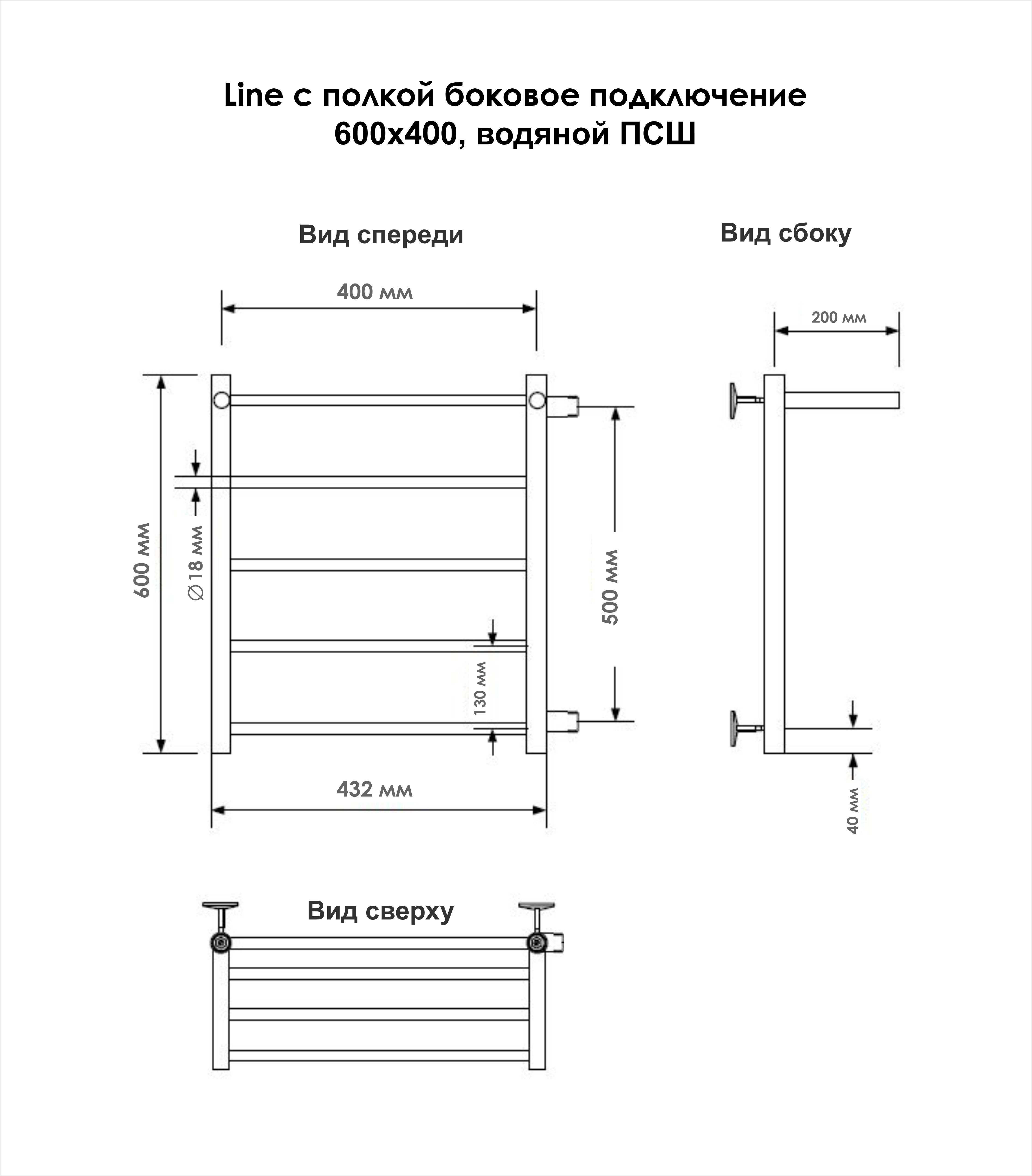 Полотенцесушитель водяной INDIGO Line с полкой с боковым подключением в размере 600х400 (ВхШ).