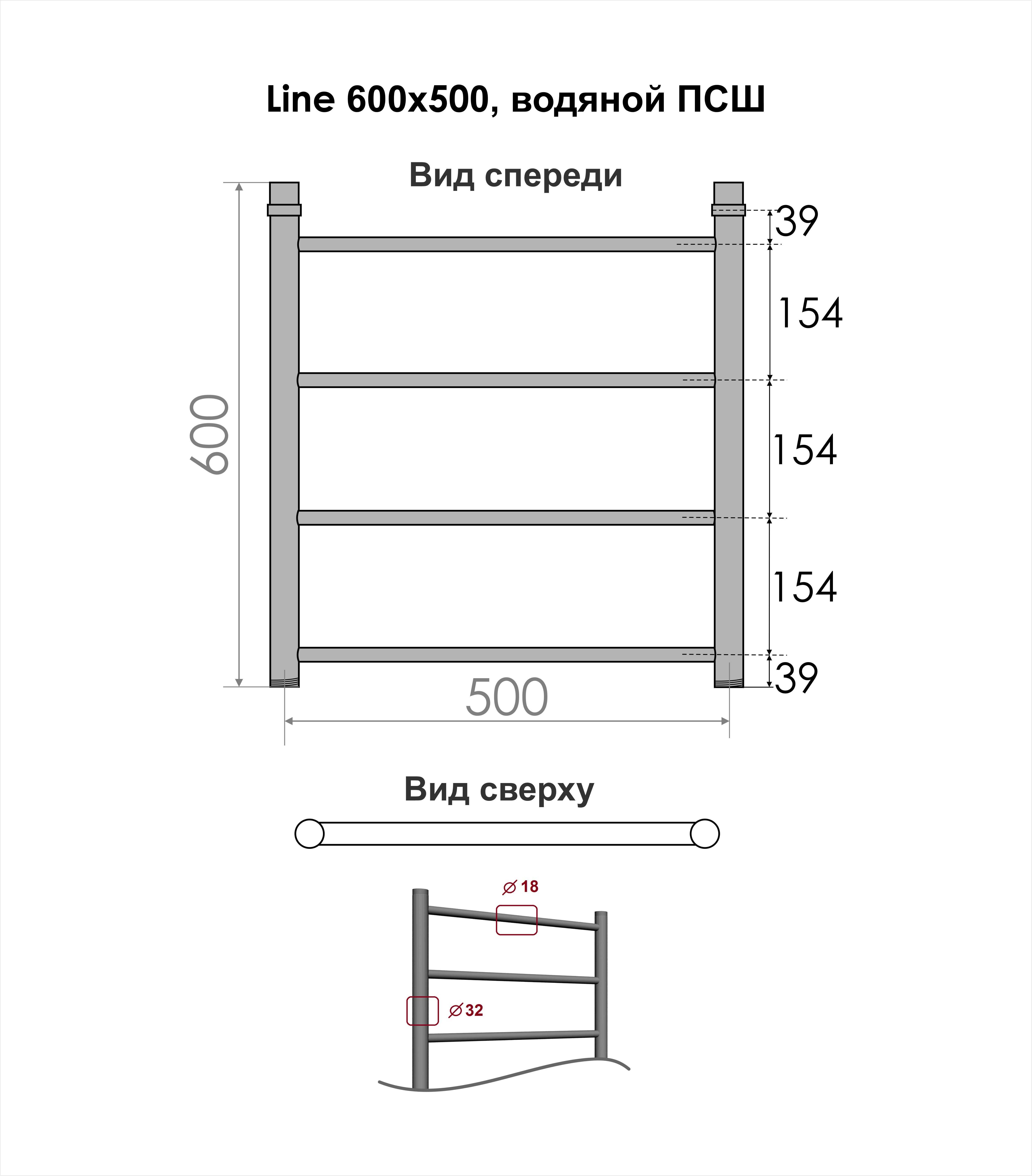 Полотенцесушитель водяной INDIGO Line в размере 600х500 (ВхШ).