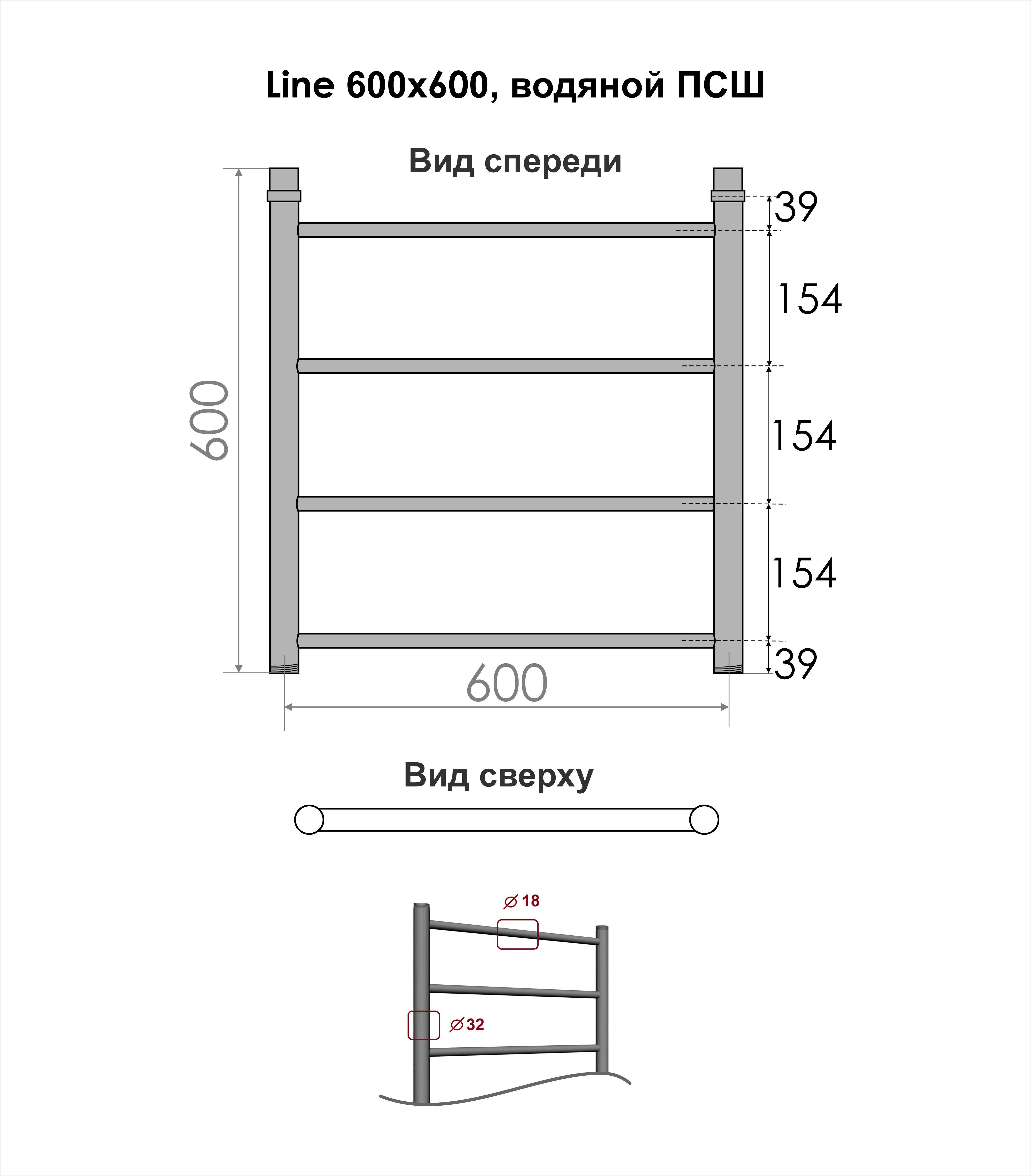 Полотенцесушитель водяной INDIGO Line в размере 600х600 (ВхШ).