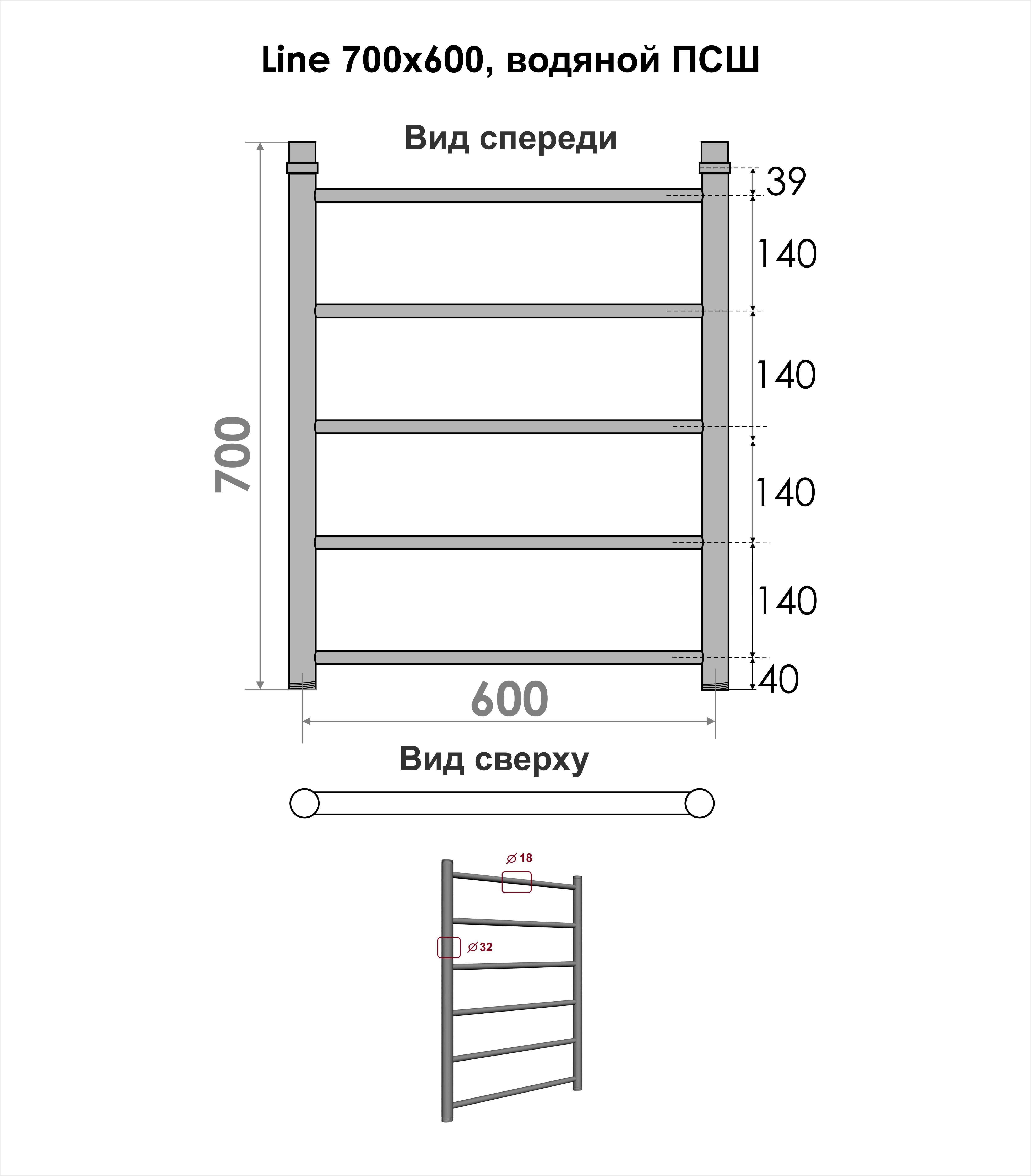 Полотенцесушитель водяной INDIGO Line в размере 700х600 (ВхШ).
