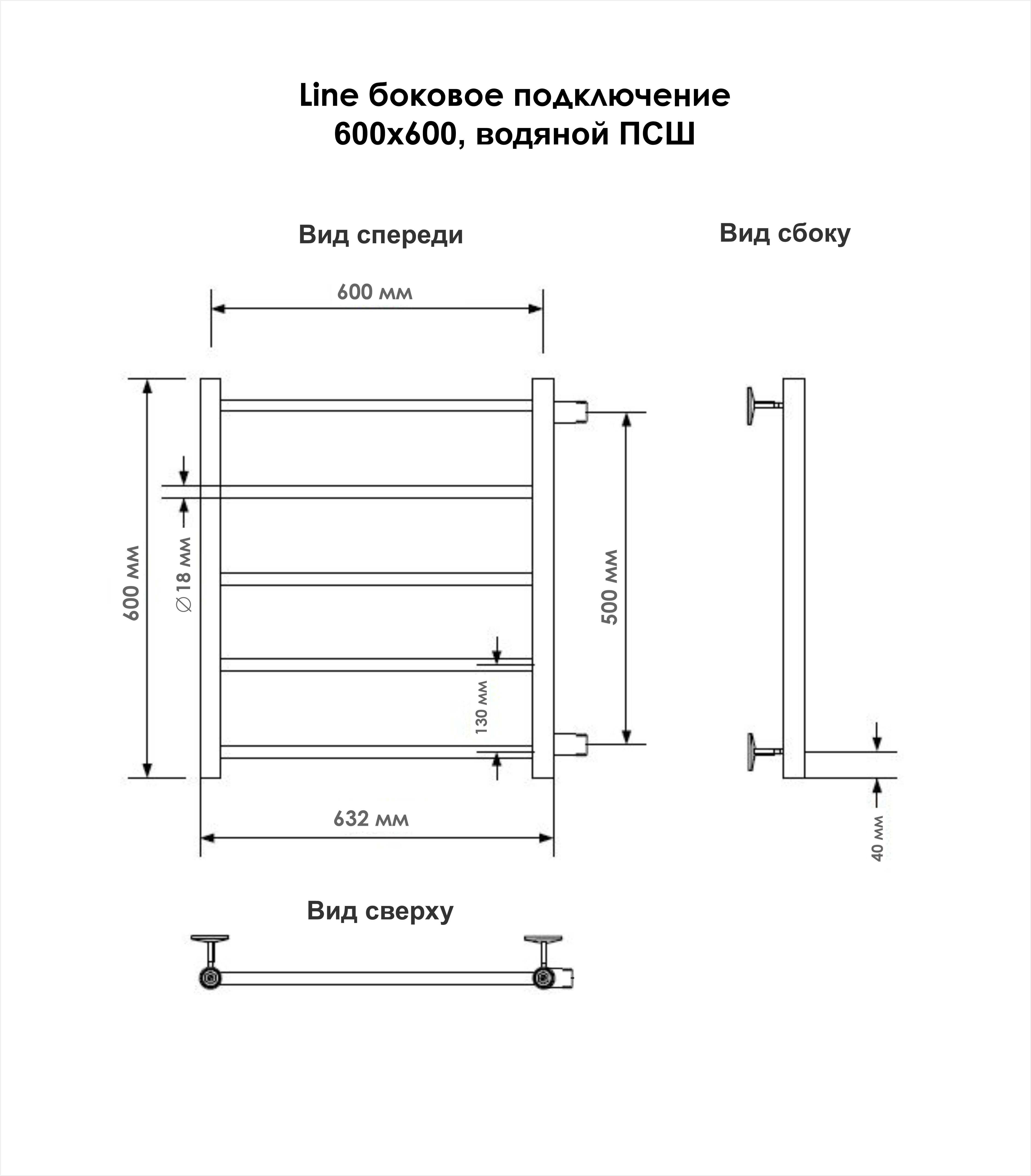 Полотенцесушитель водяной Indigo Line 677x600 1" без полочки (LLSW60-60-б/п-50)