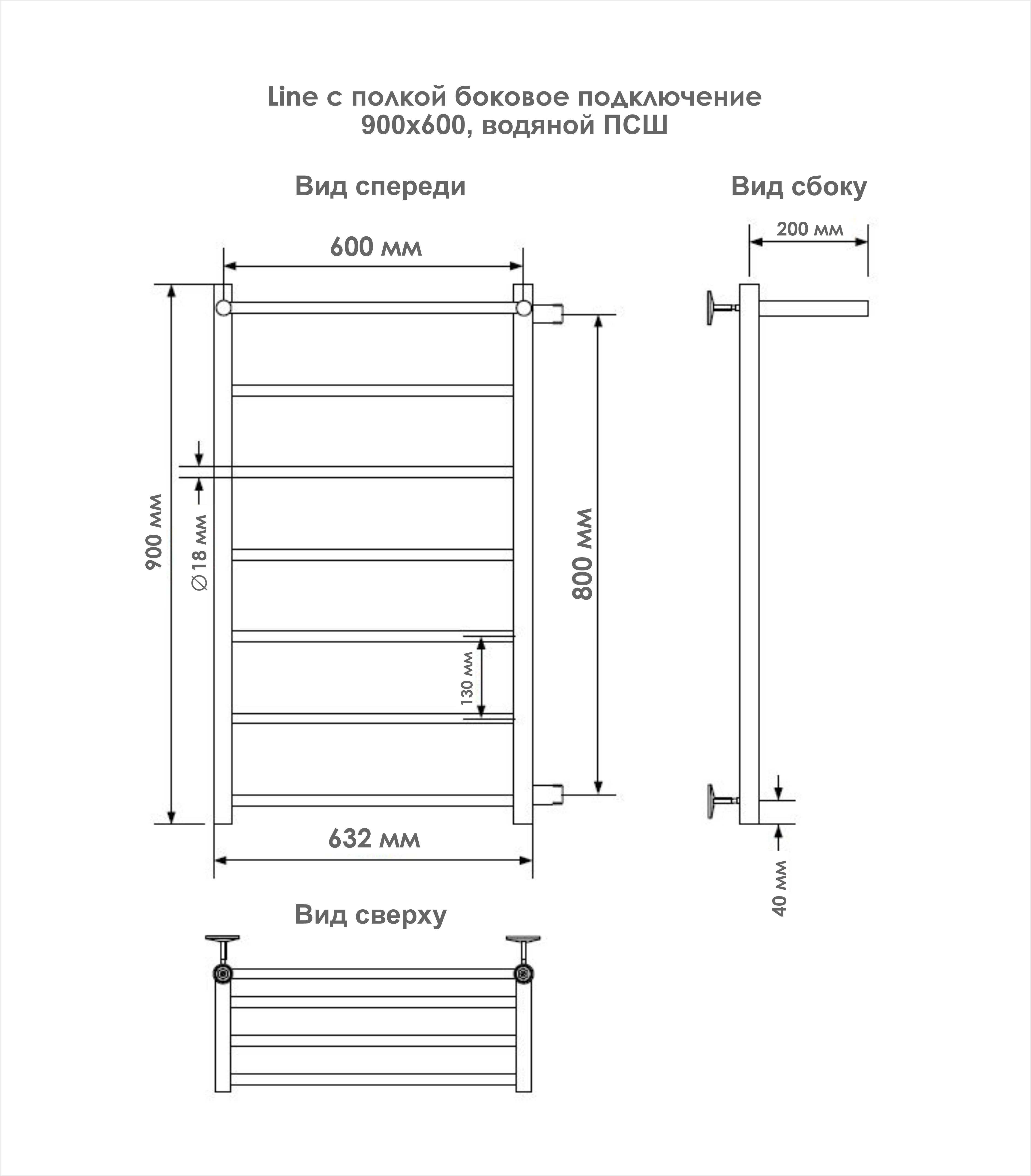 Полотенцесушитель водяной INDIGO Line с полкой с боковым подключением в размере 900х600 (ВхШ).
