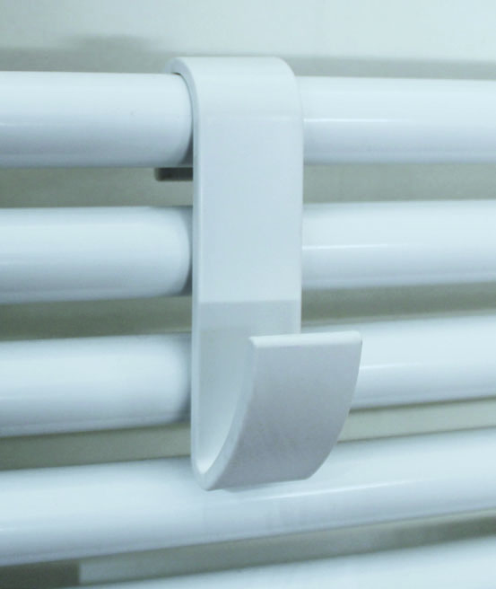 Оригинальное дизайнерское решение позволяет легко повесить и снять полотенца для просушки. Дополнительно можно также приобрести крючки для халатов и полотенец.