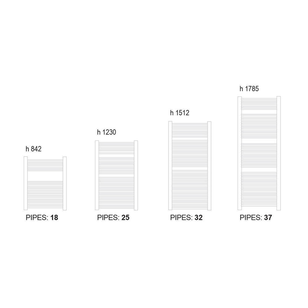 Можно приобрести хромированный или белый радиатор с прямыми или изогнутыми трубами.