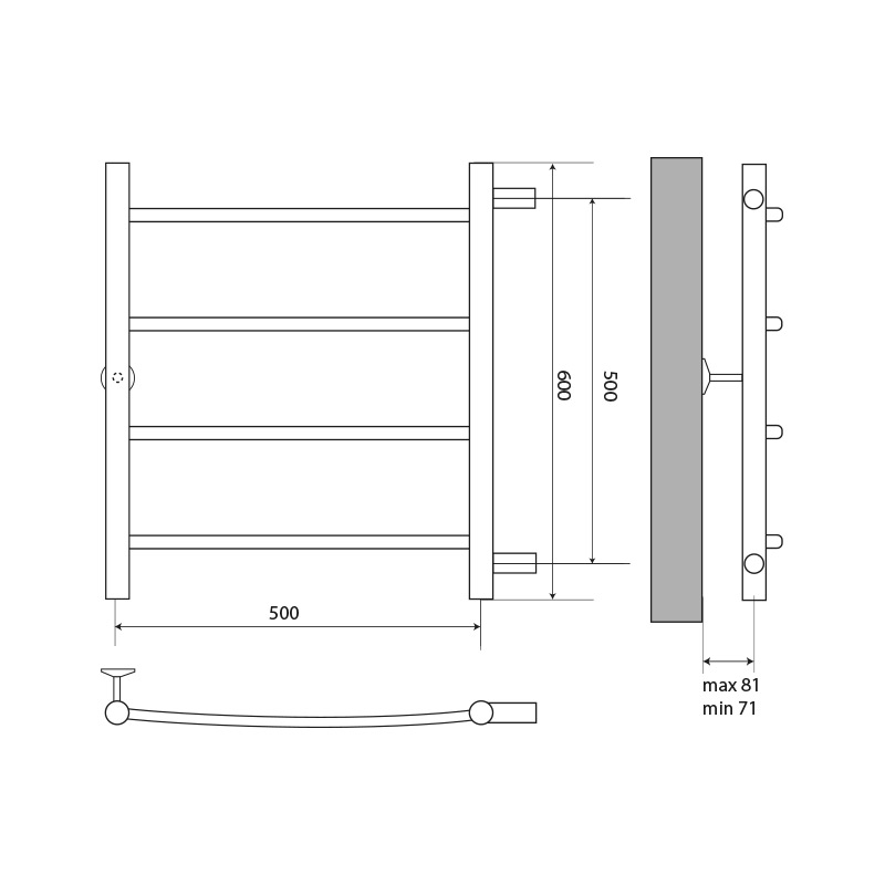 Полотенцесушитель водяной Melodia Classica 500х600 1" П4 бок.подкл. чёрный (MTRCA5060_bk)