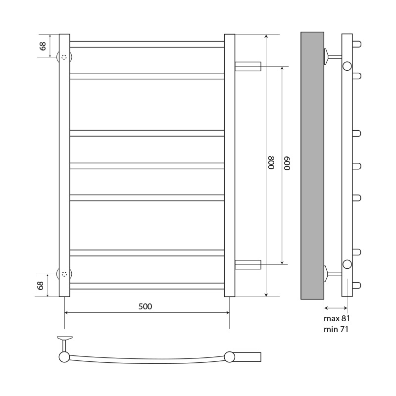 Полотенцесушитель водяной Melodia Classica 500х800 1" П7_2x3x2 м/о 60 бок.подкл. чёрный (MTRCA580_bk)