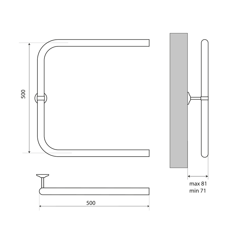 Полотенцесушитель водяной Melodia Moon 50х50 П-образный б/кронштейна (MTRMN5050)