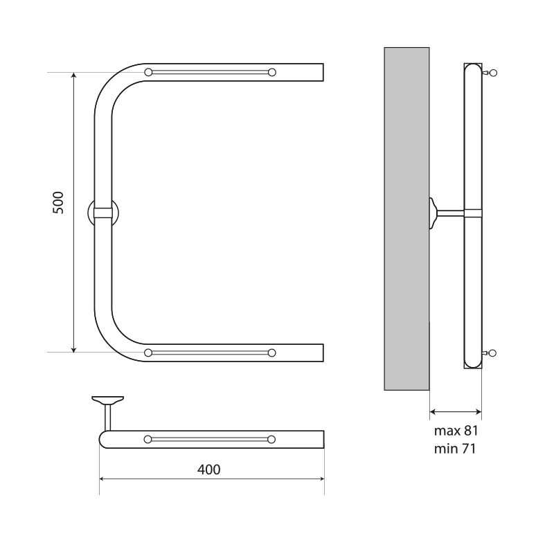 Полотенцесушитель водяной Melodia Moon Shelf 50х40 П-образный б/кронштейна (MTRMS5040)