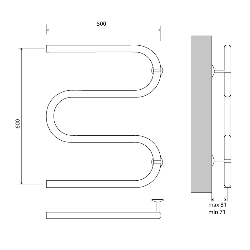 Полотенцесушитель водяной Melodia Simple М-образный б/кронштейна 60х50х1" (полимер) (MTRSP6050PLR)