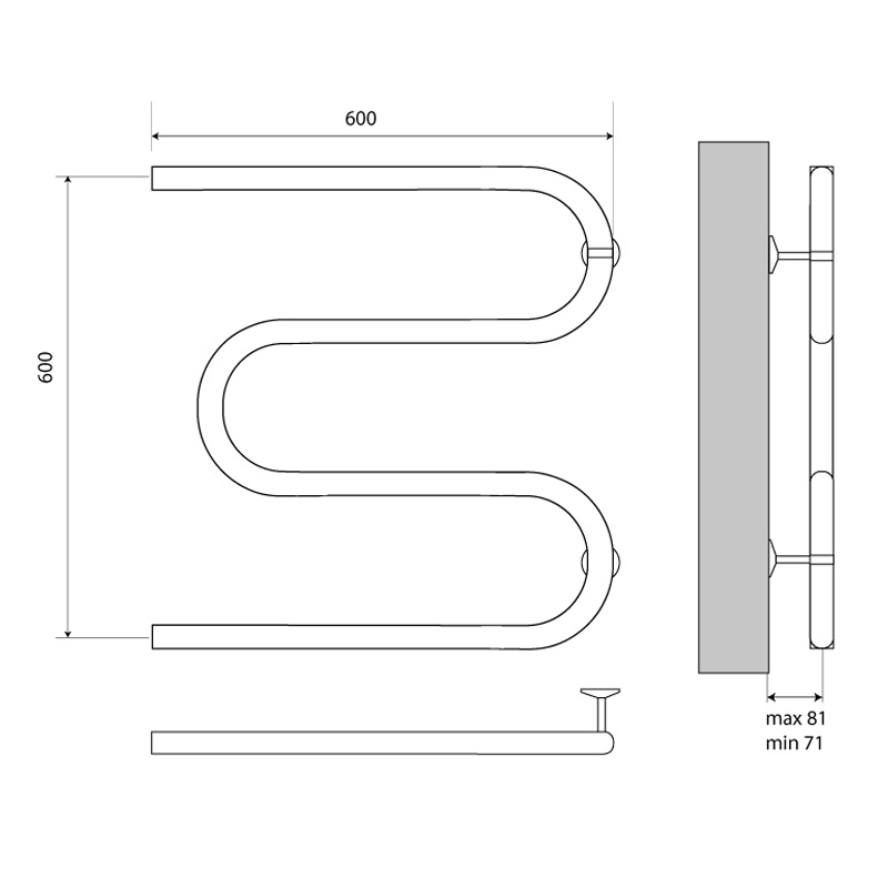 Полотенцесушитель водяной Melodia Simple М-образный б/кронштейна 60х60х1" (полимер) (MTRSP6060PLR)