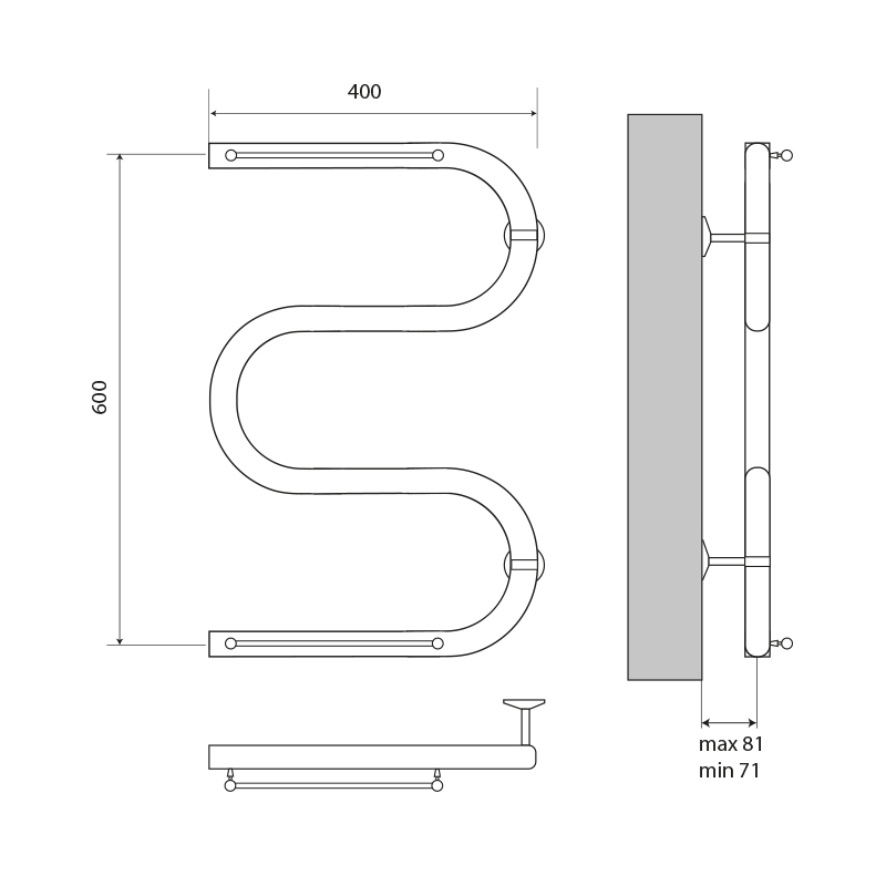 Полотенцесушитель водяной Melodia Simple Shelf М-образный б/кронштейна 60х40х1" с полкой (MTRSS6040)