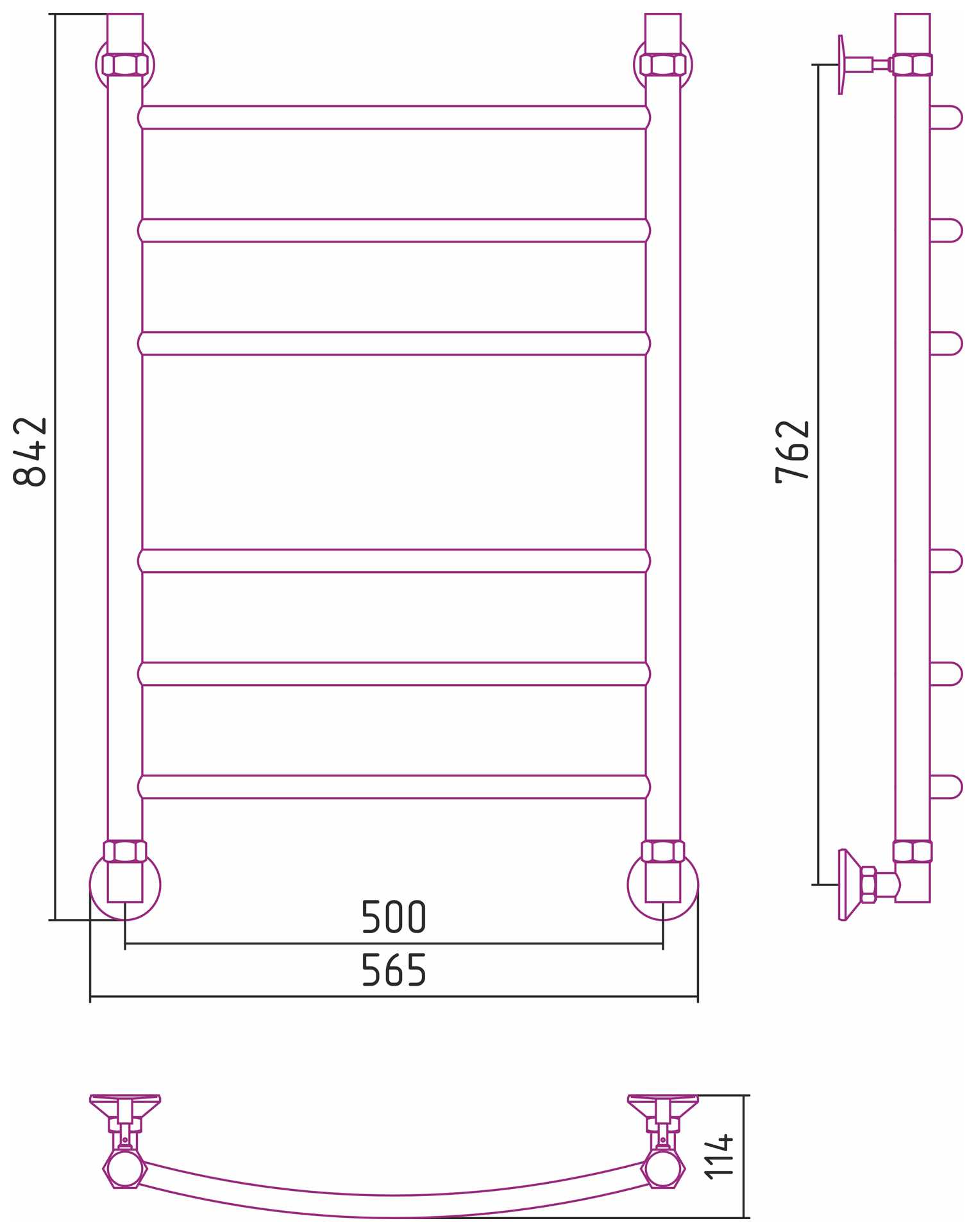 Состав поставки: полотенцесушитель, полный комплект для водяного подключения полотенцесушителя через угловые элементы с узлами для сброса воздуха.
