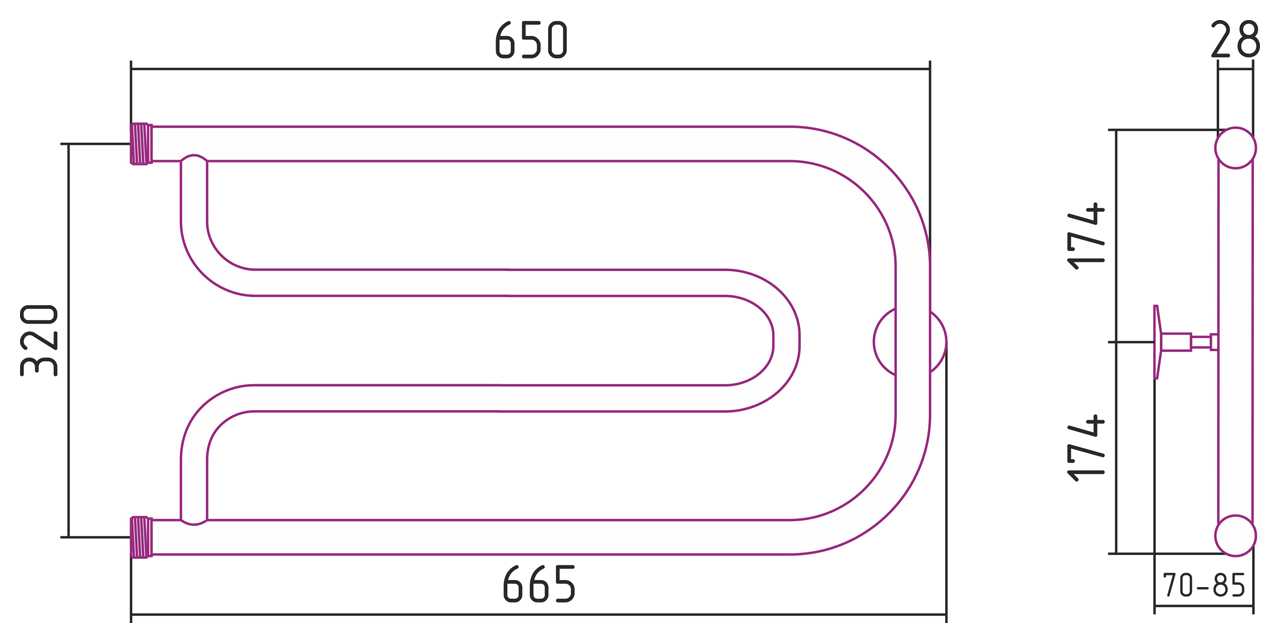 Полотенцесушитель водяной Стилье Дуэт 320х650 резьба-сгон 1 хром (00010-3265)