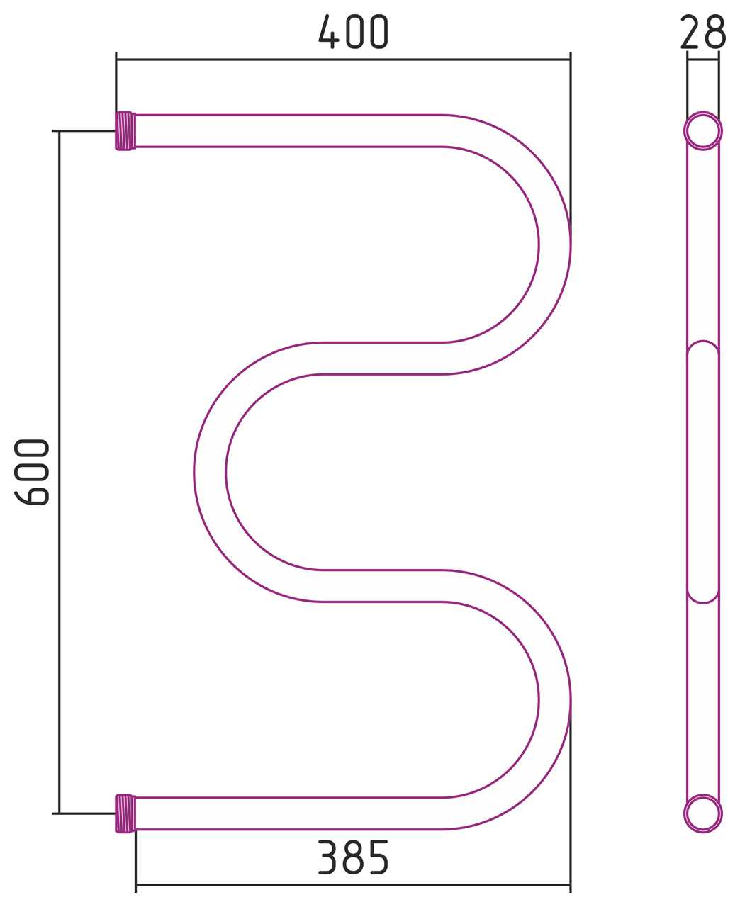 Полотенцесушитель водяной Стилье М-образный 600х400 резьба-сгон 1 хром (00004-6040)