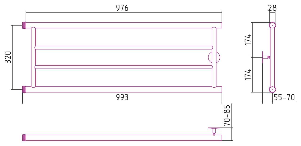 Полотенцесушитель водяной Стилье Минор 0600 320х1000 (2) П хром (00600-3210)