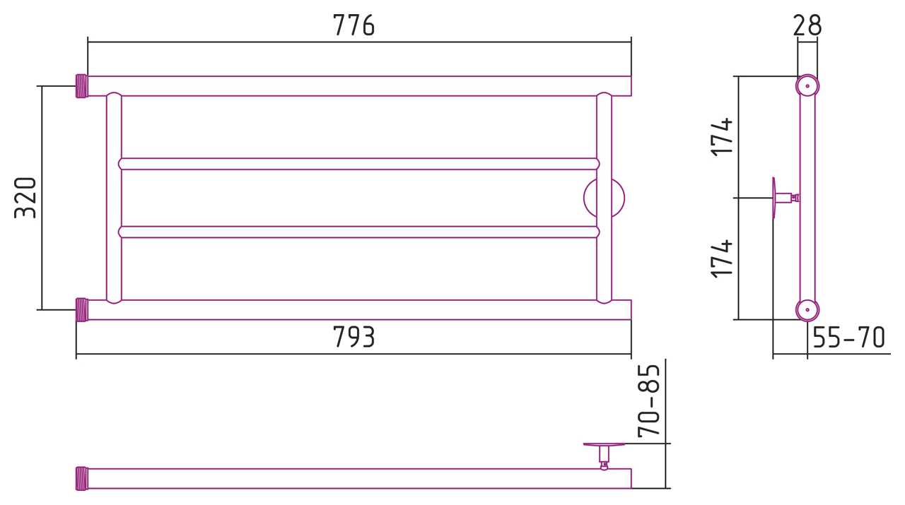 Полотенцесушитель водяной Стилье Минор 0600 320х800 (2) П хром (00600-3280)