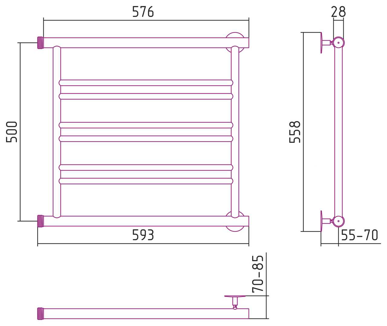 Полотенцесушитель водяной Стилье Минор 0601 500х600 (2+2+2) П хром (00601-5060)
