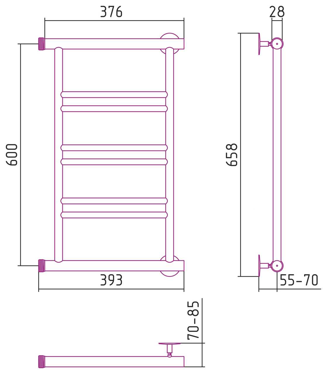 Полотенцесушитель водяной Стилье Минор 0601 600х400 (2+2+2) П хром (00601-6040)