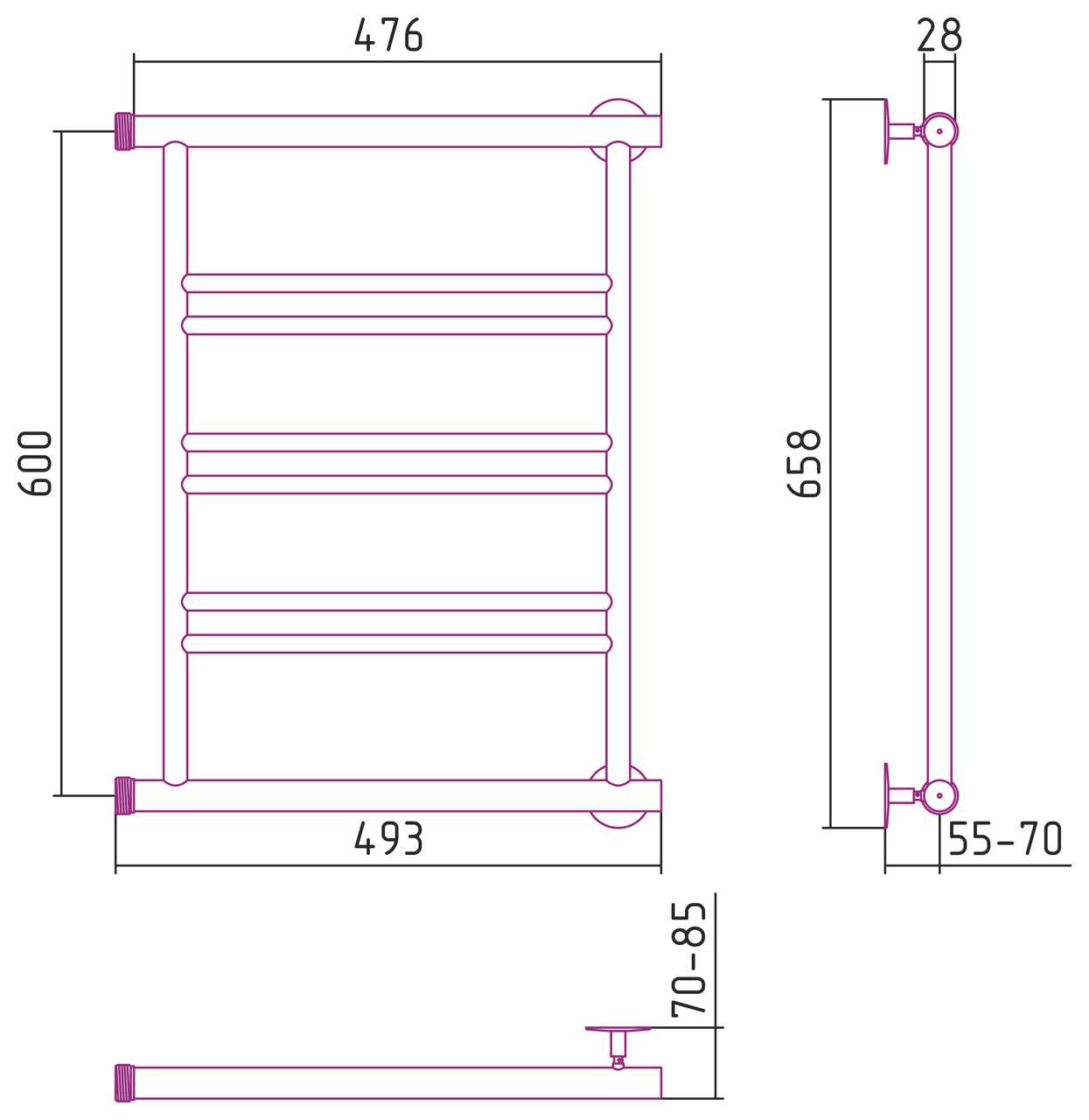 Полотенцесушитель водяной Стилье Минор 0601 600х500 (2+2+2) П хром (00601-6050)