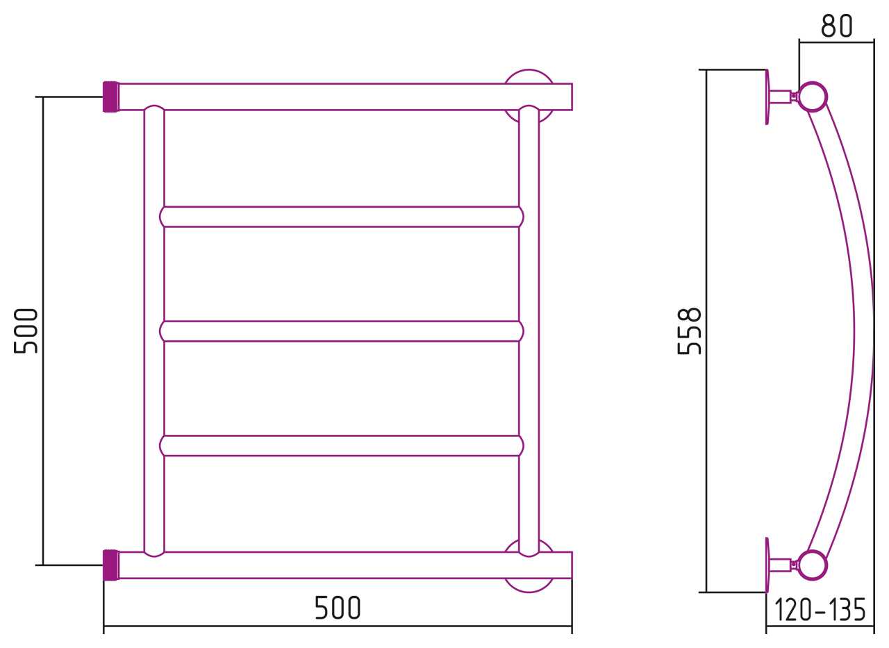 Полотенцесушитель водяной Стилье Минор 0602 500х500 (3) Г хром (00602-5050)