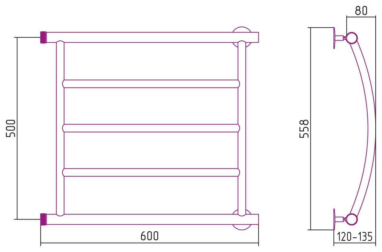 Полотенцесушитель водяной Стилье Минор 0602 500х600 (3) Г хром (00602-5060)