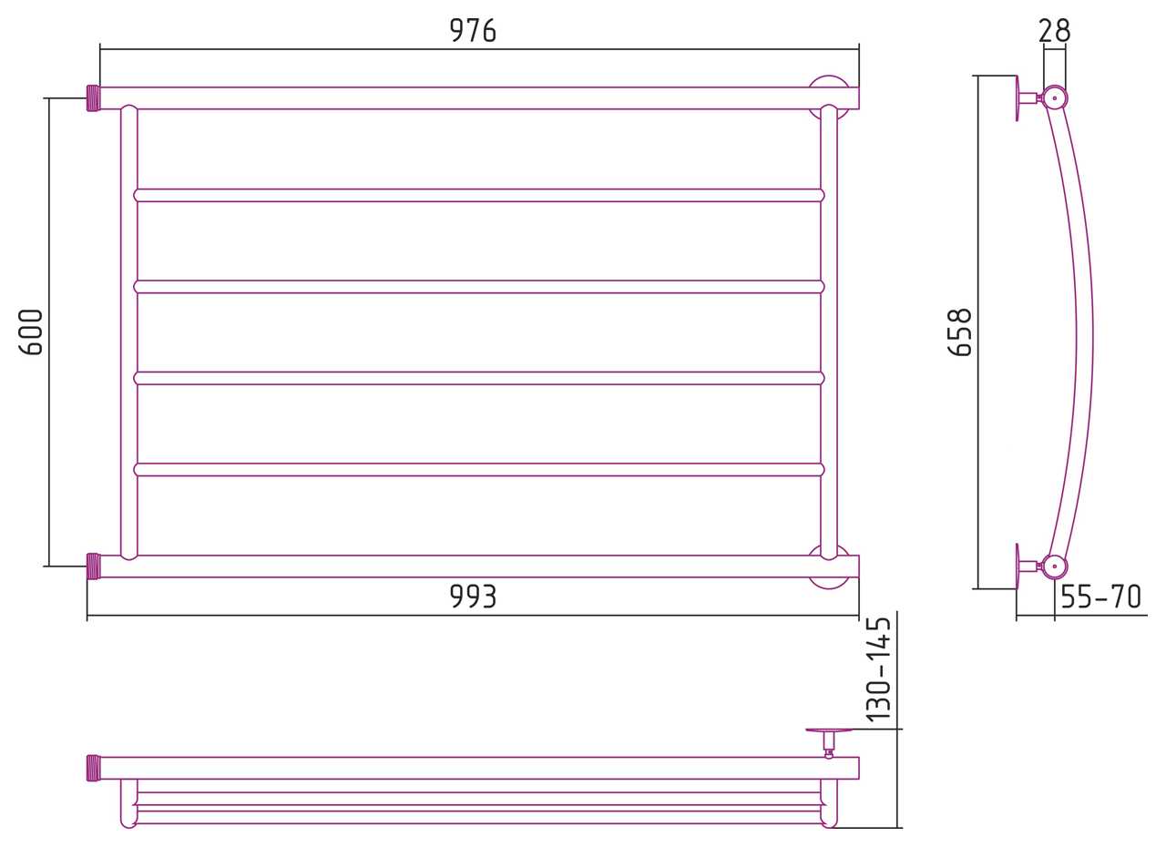 Полотенцесушитель водяной Стилье Минор 0602 600х1000 (4) Г хром (00602-6010)