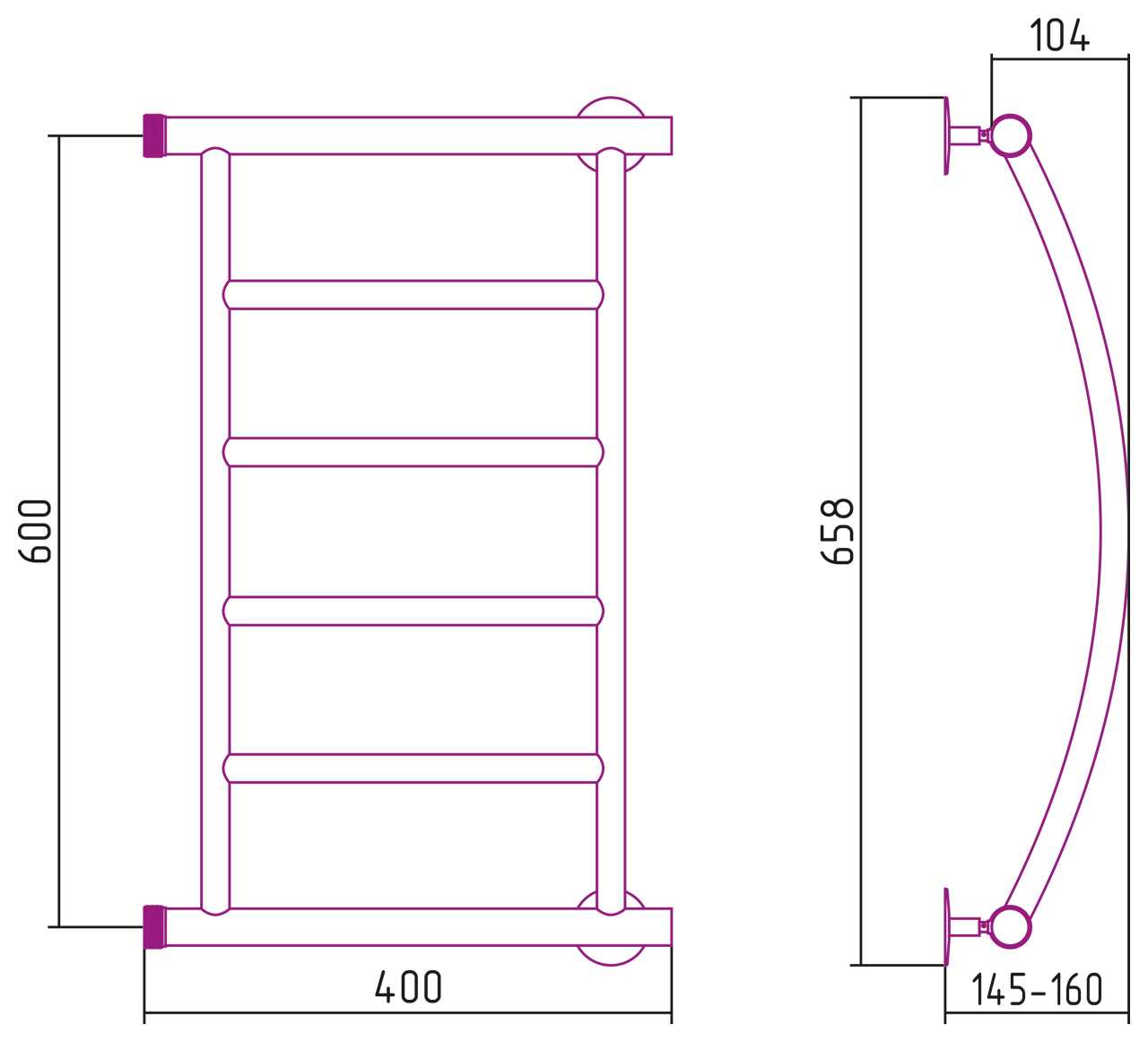 Полотенцесушитель водяной Стилье Минор 0602 600х400 (4) Г хром (00602-6040)