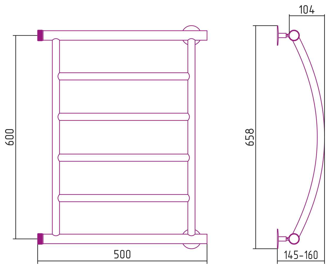 Полотенцесушитель водяной Стилье Минор 0602 600х500 (4) Г хром (00602-6050)