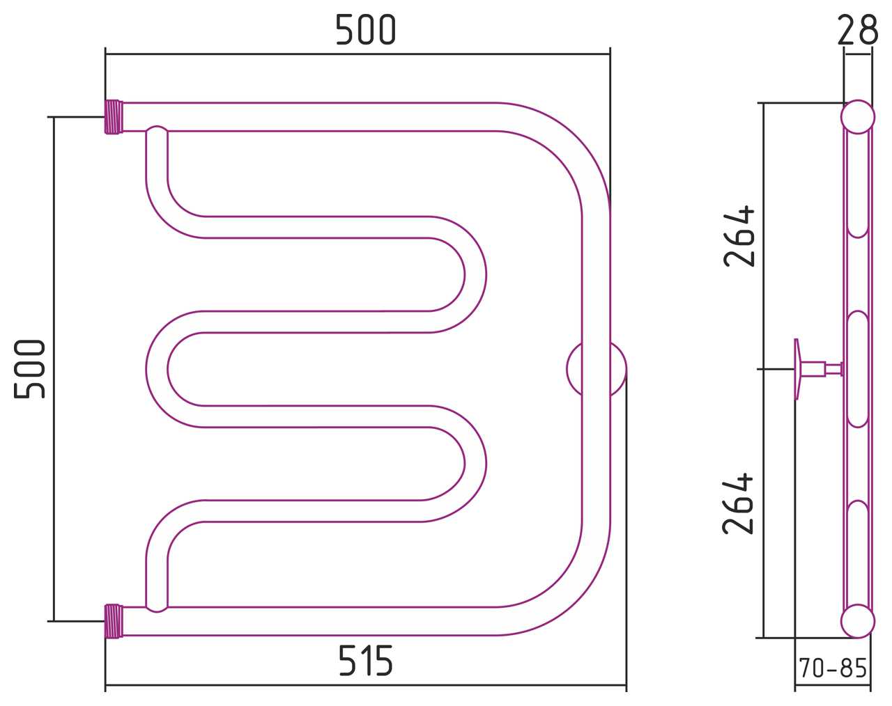 Полотенцесушитель водяной Стиле Тандем 500х500 резьба-сгон 1 хром (00011-5050)
