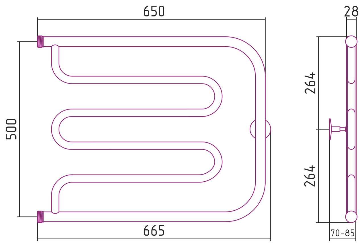 Полотенцесушитель водяной Стилье Тандем 500х650 резьба-сгон 1 хром (00011-5065)