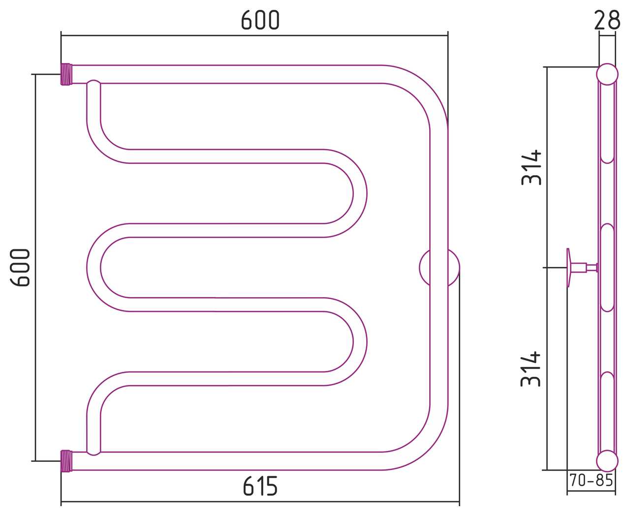 Полотенцесушитель водяной Стилье Тандем 600х600 резьба-сгон 1 хром (00011-6060)