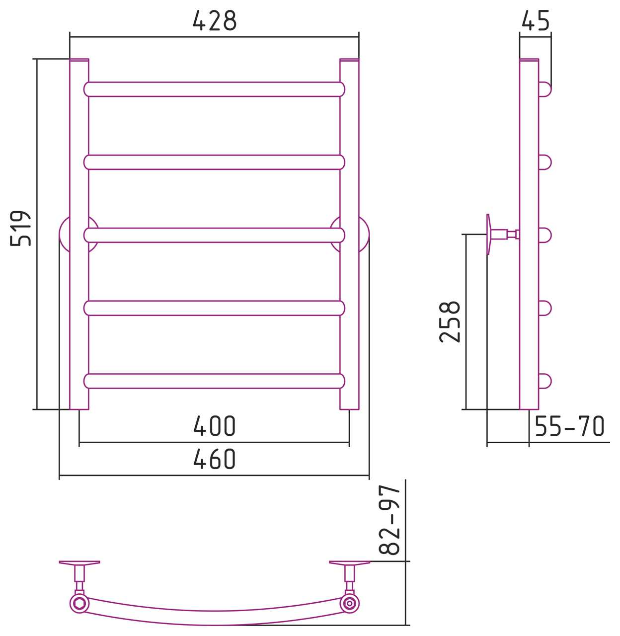 Полотенцесушитель водяной Стилье Универсал-50 600х400 (5) Г 21 хром (00650-6040)