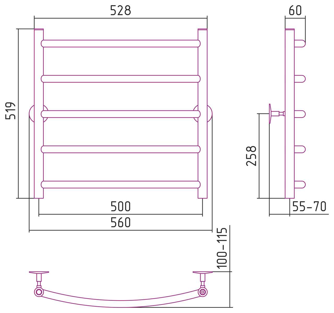Полотенцесушитель водяной Стилье Универсал-50 600х500 (5) Г 21 хром (00650-6050)