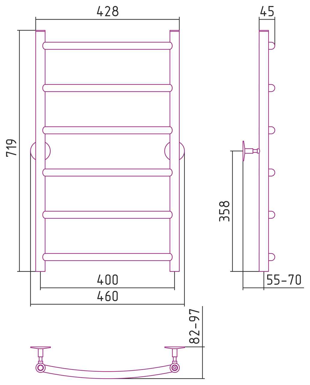 Полотенцесушитель водяной Стилье Универсал-50 800х400 (6) Г 21 хром (00650-8040)