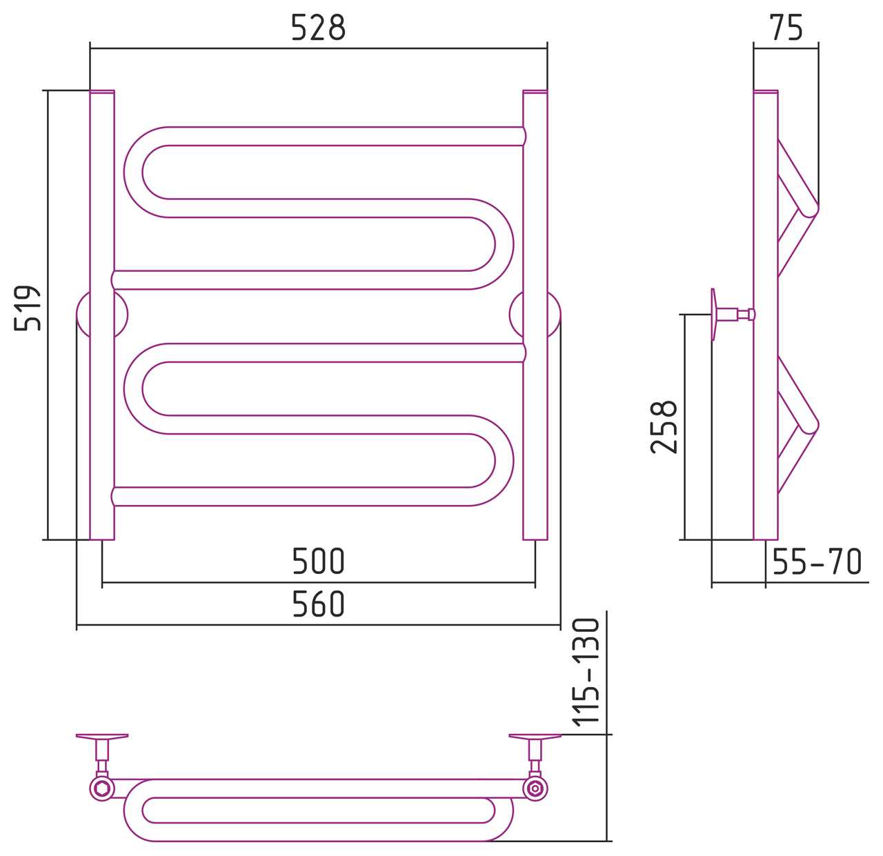 Полотенцесушитель водяной Стилье Универсал-51 600х500 (2) Z 21 хром (00651-6050)