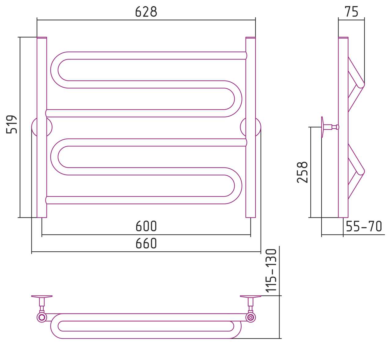 Полотенцесушитель водяной Стилье Универсал-51 600х600 (2) Z 21 хром (00651-6060)