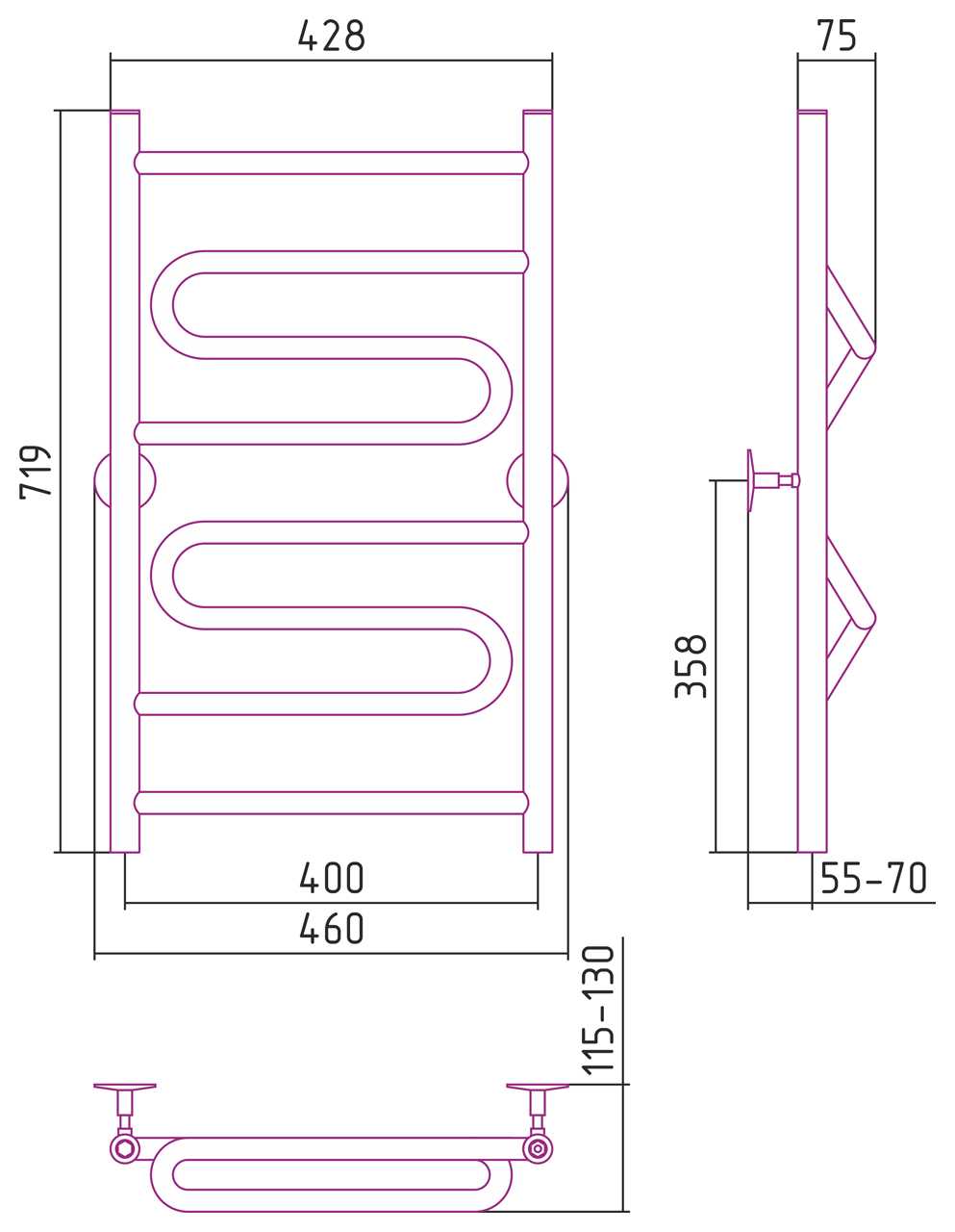 Полотенцесушитель водяной Стилье Универсал-51 800х400 (1+2+1) ПZП 21 хром (00651-8040)