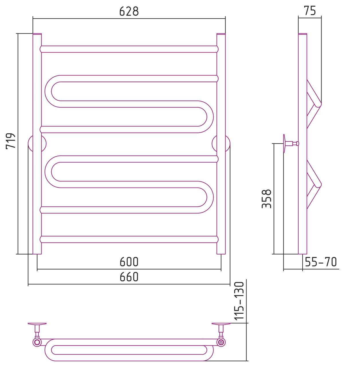 Полотенцесушитель водяной Стилье Универсал-51 800х600 (1+2+1) ПZП 21 хром (00651-8060)