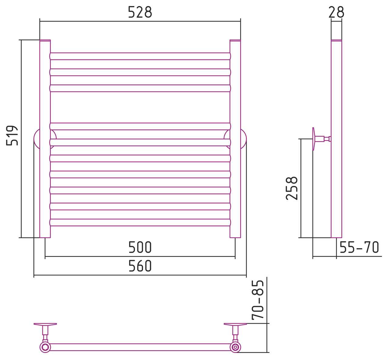 Полотенцесушитель водяной Стилье Универсал-53 600х500 (3+7) П 18 хром (00653-6050)