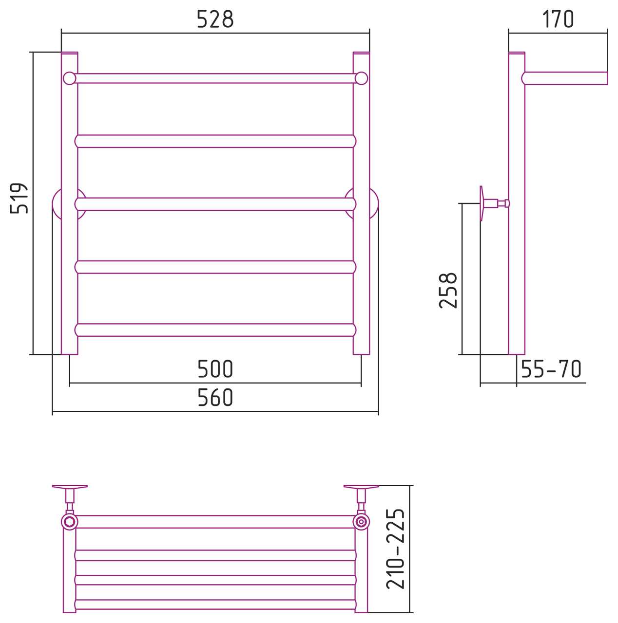 Полотенцесушитель водяной Стилье Универсал-54 600х500 (Полка + 4) П 21 хром (00654-6050)