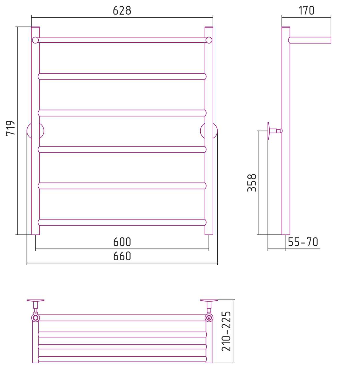 Полотенцесушитель водяной Стилье Универсал-54 800х600 (Полка + 5) П 21 хром (00654-8060)