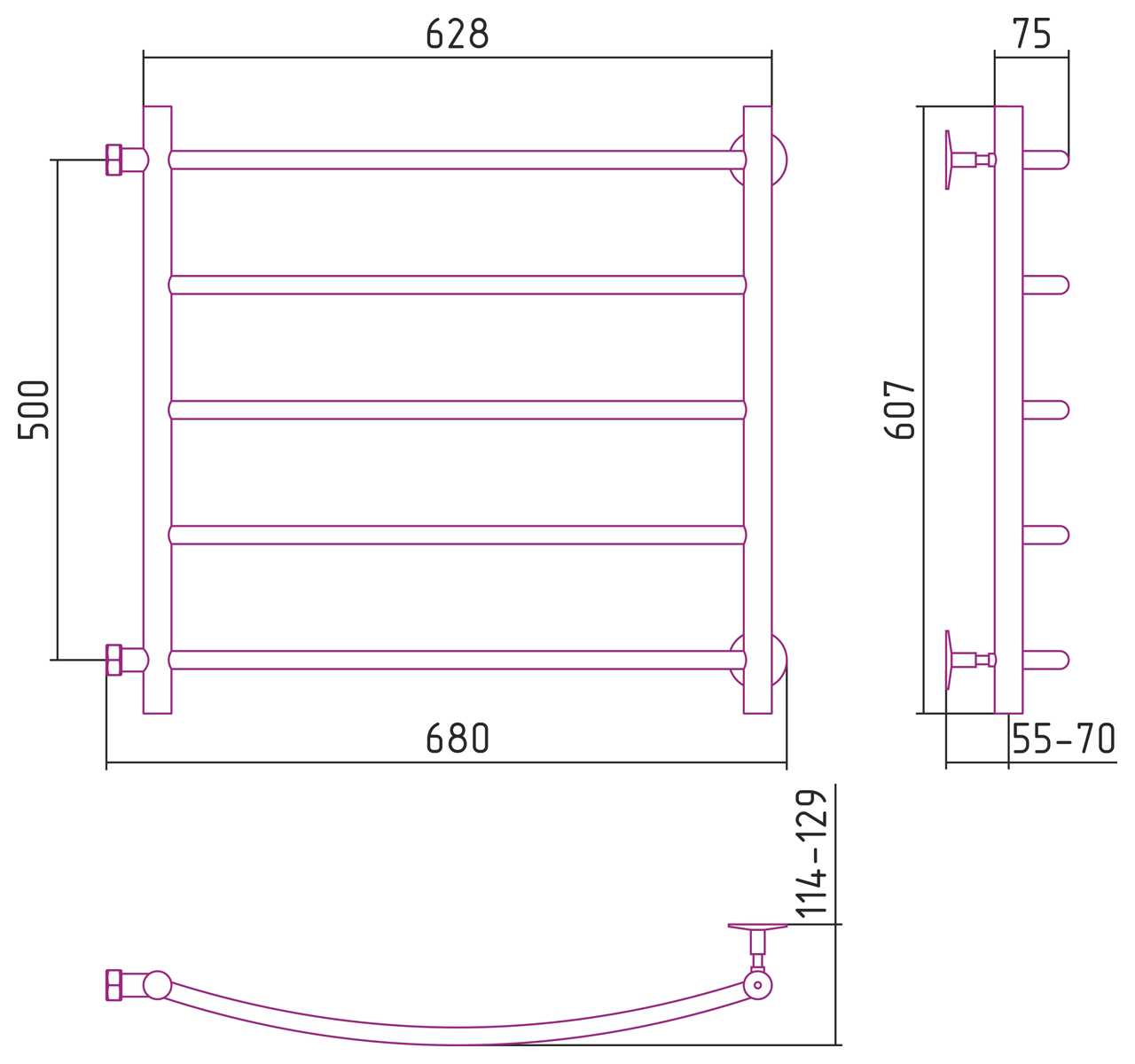 Полотенцесушитель водяной Стилье Версия-Б2 500х600 (5) Г 18 черный (17612-5060)