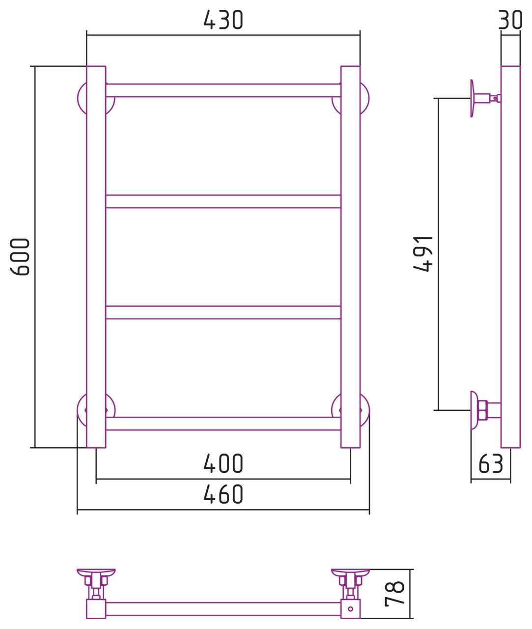 Полотенцесушитель водяной Стилье Версия-КН 600х400 (4) П 20х20 хром (00640-6040)