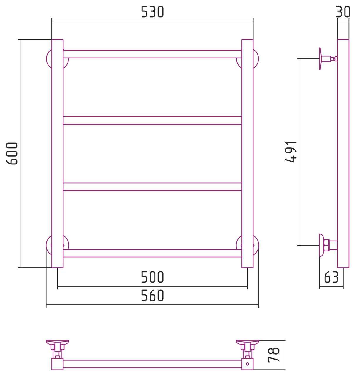 Полотенцесушитель водяной Стилье Версия-КН 600х500 (4) П 20х20 хром (00640-6050)