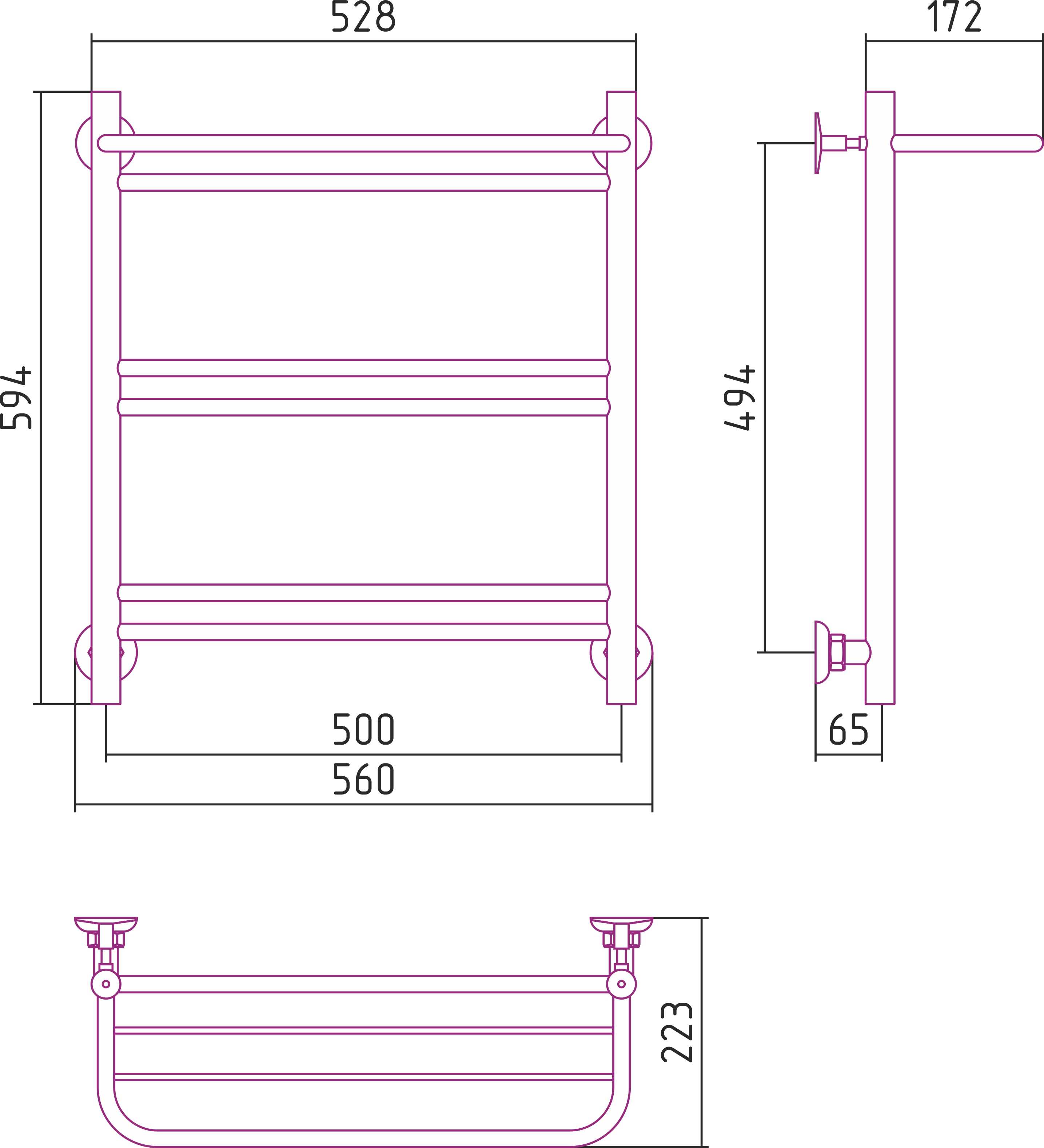 Полотенцесушитель водяной Стилье Версия-Н1 600х500 (Полка+1+2+2) П 16 черный (17621-6050)