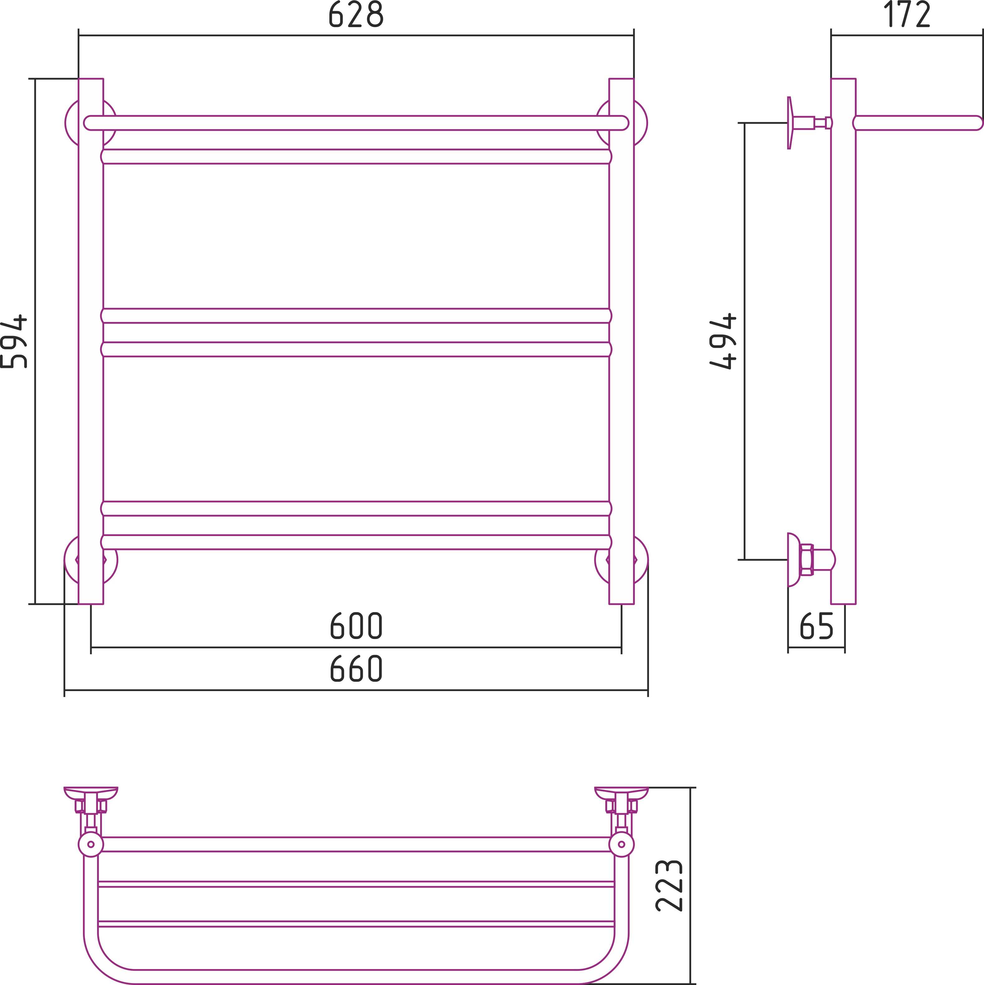 Полотенцесушитель водяной Стилье Версия-Н1 600х600 (Полка+1+2+2) П 16 белый (12621-6060)