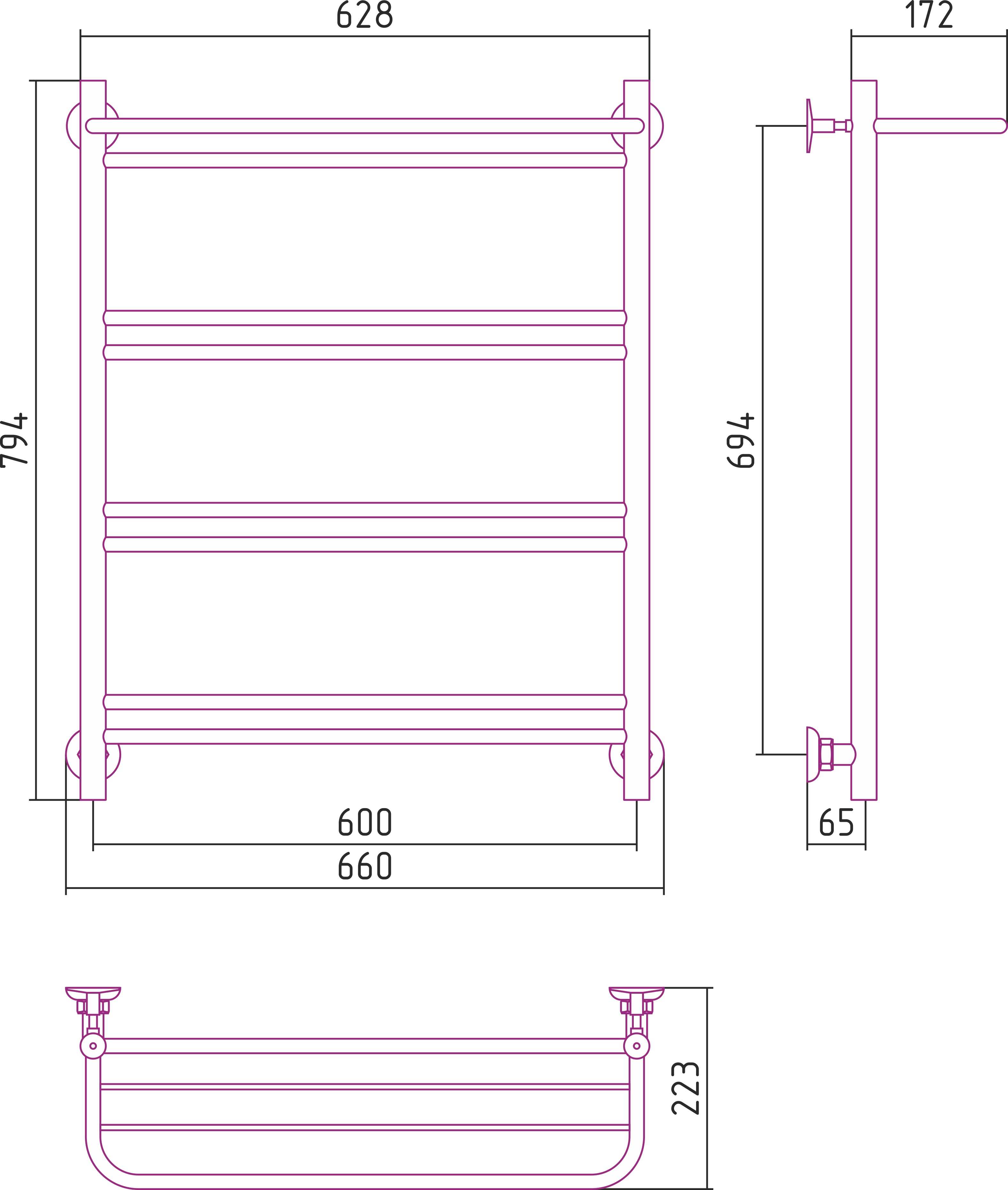 Полотенцесушитель водяной Стилье Версия-Н1 800х600 (Полка+1+2+2+2) П 16 черный (17621-8060)