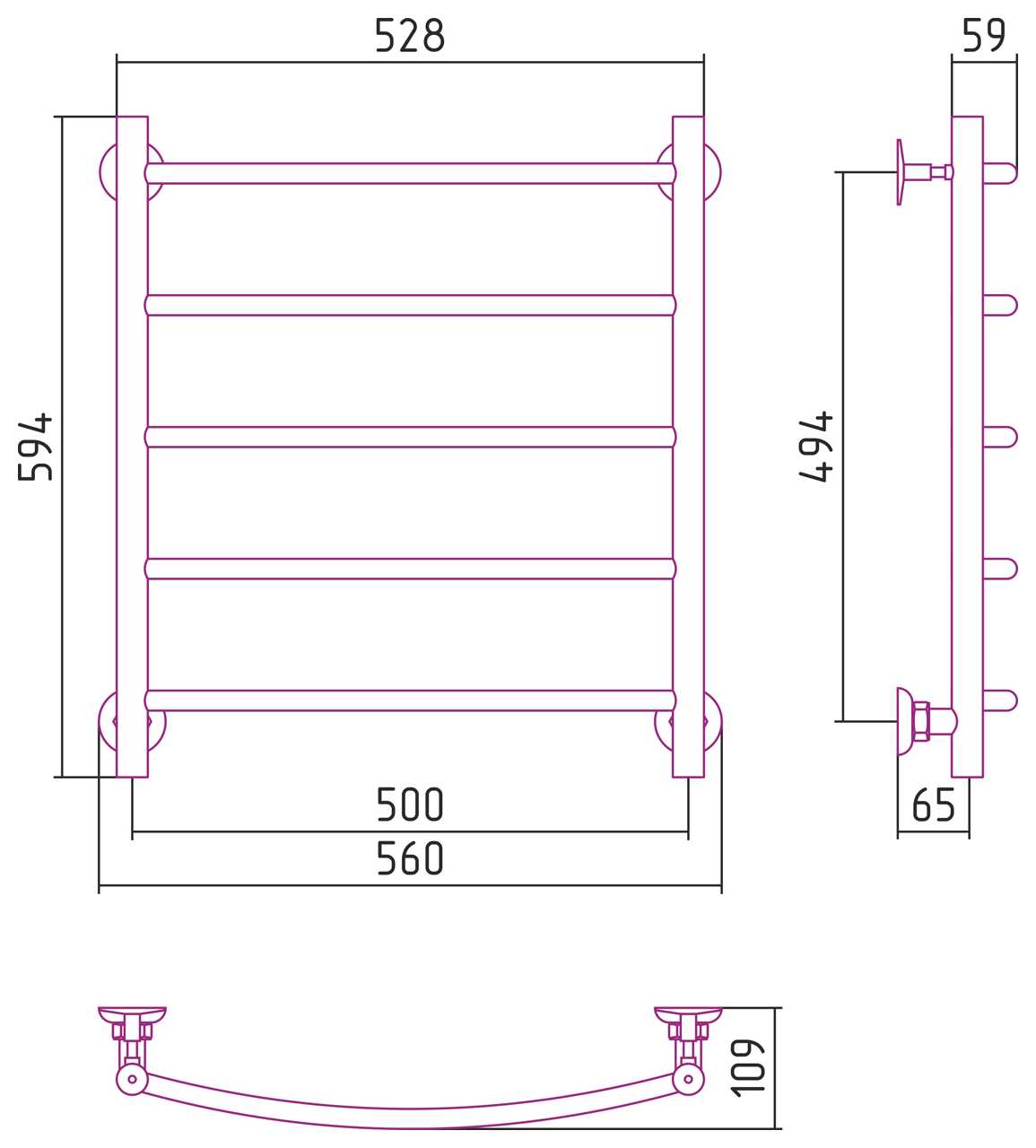 Полотенцесушитель водяной Стилье Версия-Н2 600х500 (5) Г 18 черный (17622-6050)